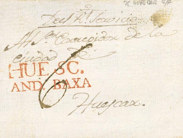 1809. CANILES (GRANADA) a LORCA. Marca BAZA / ANDALUCIA / VAXA, estampada en tránsito (P.E.5) edición 2004. MAGNIFICA Y RARISIMA.