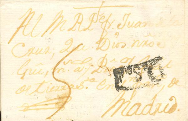 1751. SEVILLA a MADRID. Marca DE SEVILL (P.E.2) edición 2004. MAGNIFICA Y RARISIMA.