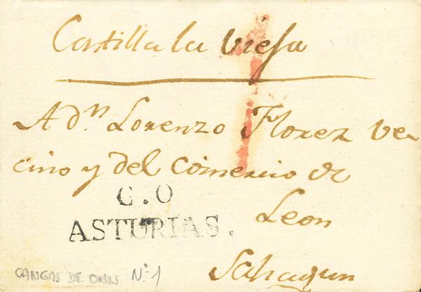 1832. COVADONGA a SAHAGUN (LEON). Marca CO. / ASTURIAS, en negro de Cangas de OnÃs (P.E.2) edición 2004. MAGNIFICA ESTAMPACION.