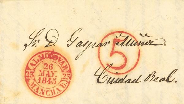 1845. FUENCALIENTE (CIUDAD REAL) a CIUDAD REAL. Baeza ALMODOVAR / MANCHA B. MAGNIFICA ESTAMPACION.
