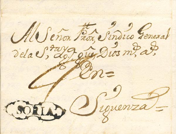 1780. ATIENZA (GUADALAJARA) a SIGÜENZA. Marca SORIA, en negro de Atienza (P.E.1) edición 2004. MAGNIFICA Y EXTRAORDINARIAMENTE RARA, FECHA ANTERIOR A LA RESEÑADA.