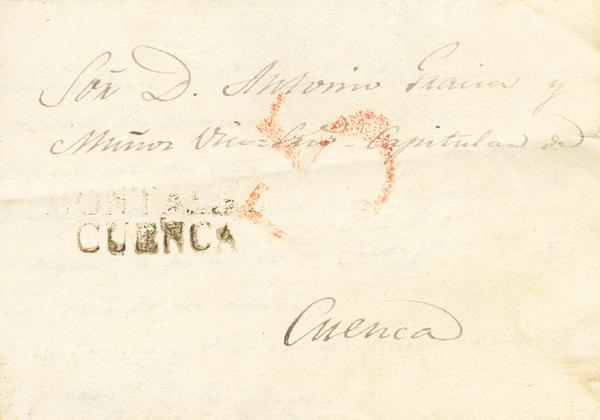 1835. MONTALBO (CUENCA) a CUENCA. Marca MONTALBO / CUENCA, en negro (P.E.1) edición 2004. MAGNIFICA Y RARISIMA.