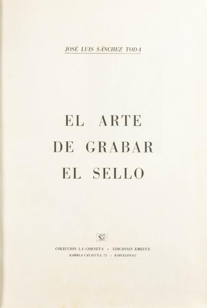 1969. EL ARTE DE GRABAR EL SELLO. José Luis Sánchez Toda. Edición Emeuve. Madrid, 1969 (manchitas del tiempo). A EXAMINAR.