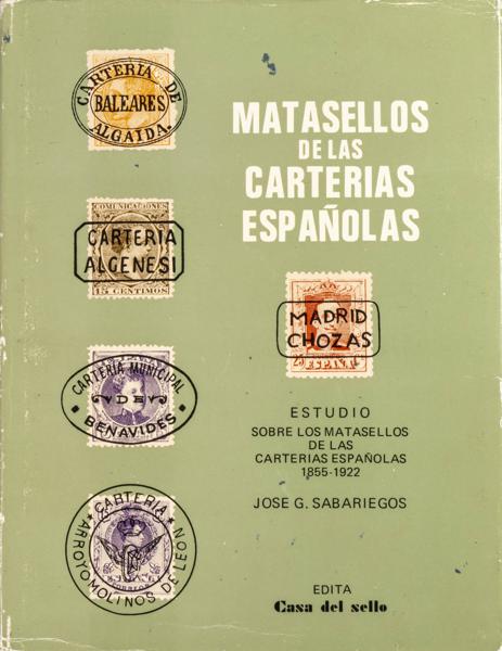 1980. MATASELLOS DE LAS CARTERIAS ESPAÑOLAS. José G.Sabariegos. Casa del Sello. Madrid, 1980.