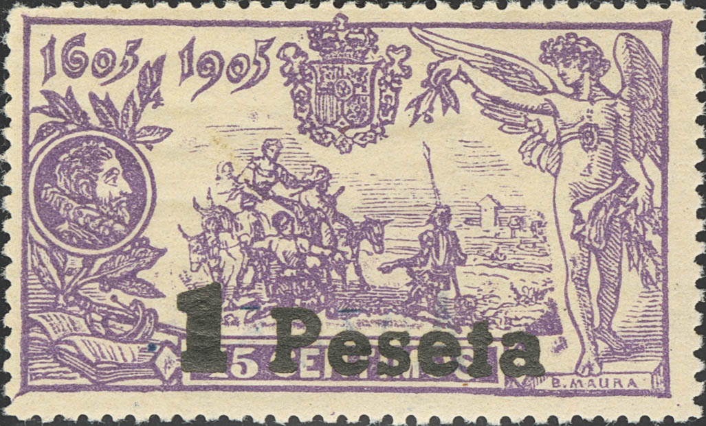 ★★ 762hpa. 1938. 1 pts sobre 15 cts violeta (NºA034510). Sobrecarga 1 PESETA, omitido el resto de la sobrecarga. MAGNIFICO Y RARO. Edifil 2020: +235 Euros