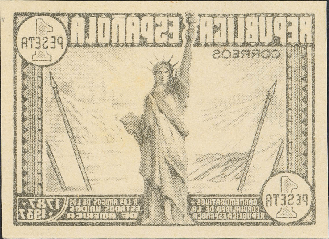 (★) 763P. 1938. 1 pts multicolor. PRUEBA DE COLOR, en negro e IMPRESION NEGATIVA. MAGNIFICA.
