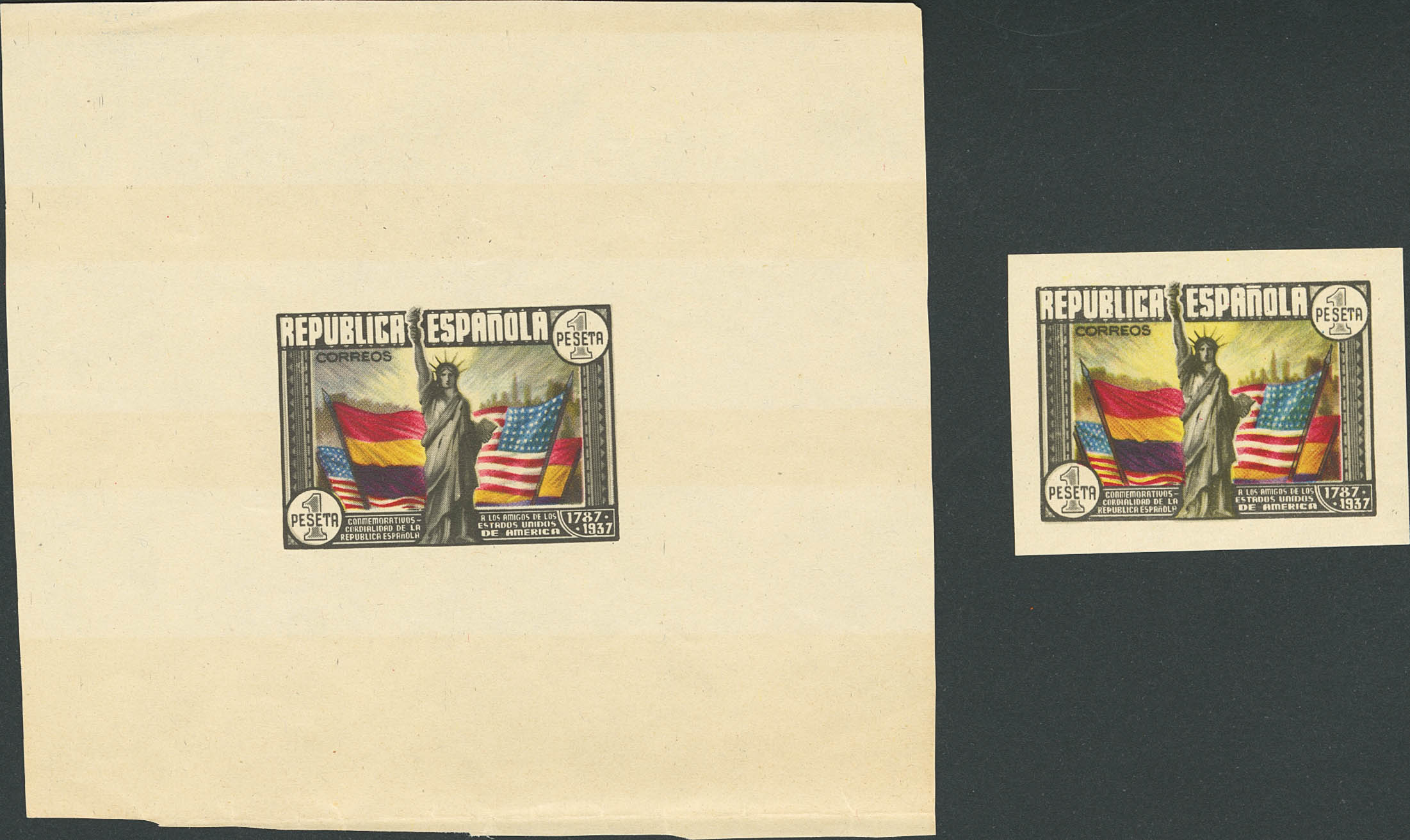 ★★/(★) 763s, 764s. 1938. Hoja bloque sin numeración (conservación habitual) y 1 pts multicolor (procedente de la hojita). SIN DENTAR. MAGNIFICOS.