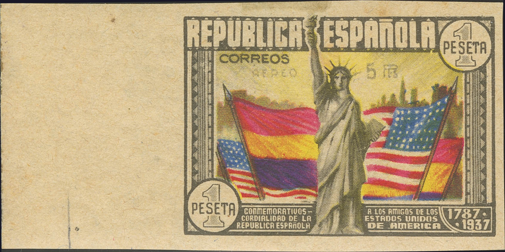 ★ 765hrs. 1938. AEREO+5 PTS, borde de hoja (conservación habitual). SOBRECARGA EN ANVERSO Y REVERSO y SIN DENTAR. BONITO.