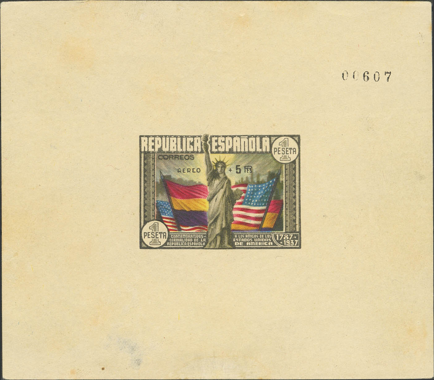 ★★ 766ns. 1938. AEREO+5 PTS, hoja bloque (conservación habitual y numeración privada). SIN DENTAR. BONITA Y RARA. Cert. CEM.