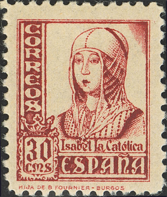 ★★ 823et. 1937. 30 cts carmín. PIE DE IMPRENTA DESPLAZADO A LA IZQUIERDA. MAGNIFICO Y RARISIMO. Edifil 2021: 600 Euros