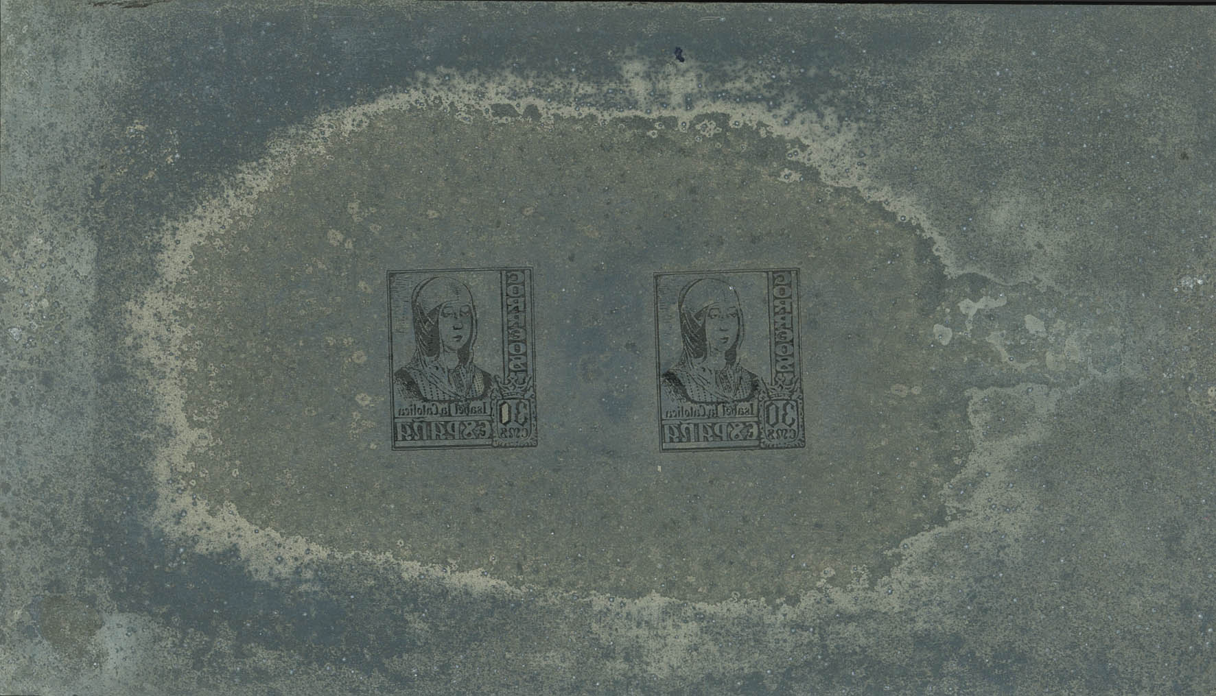(★) 823P. 1937. 30 cts, dos valores sobre plancha metálica litográfica con IMPRESION EN ESPEJO, del valor. MAGNIFICA Y RARISIMA.