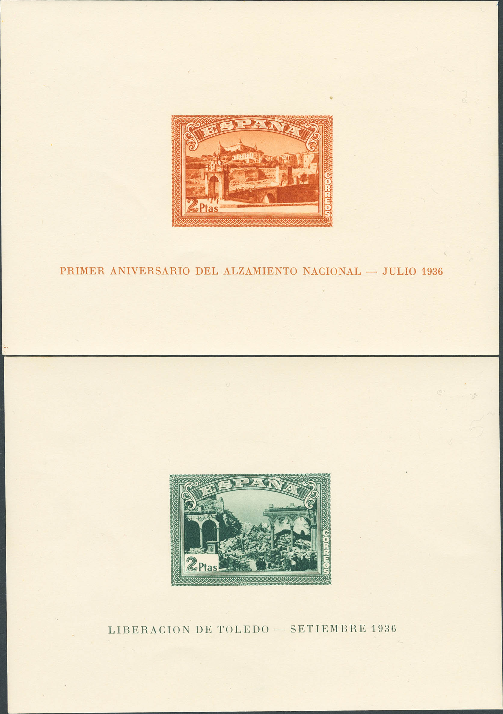 ★★ 838/39. 1937. Hojas bloque. SIN DENTAR. MAGNIFICAS. Cert. CEM. Edifil 2025: 1.250 Euros