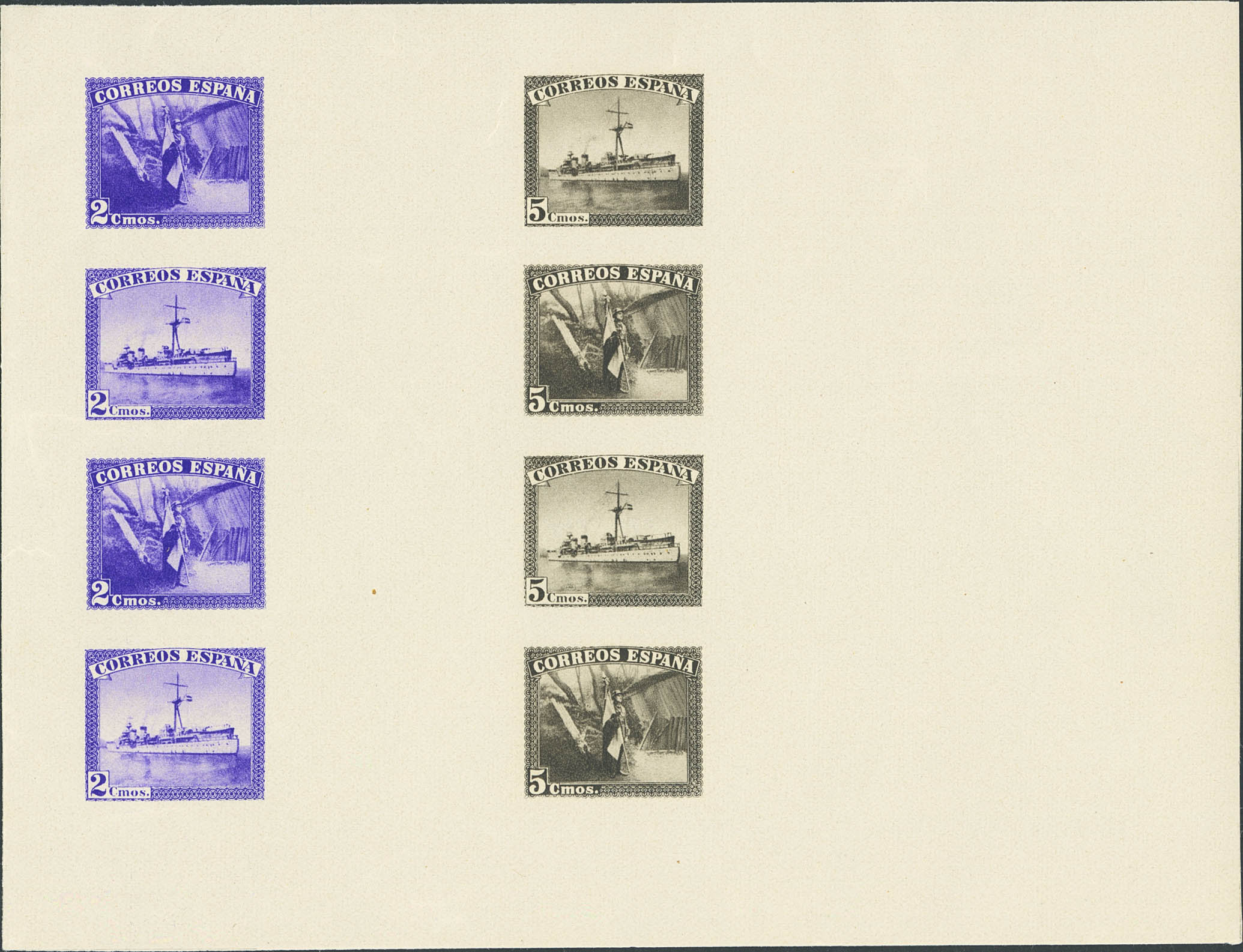 (★) 850P. 1938. Hoja bloque SIN DENTAR. FALTA IMPRESION DE LOS COLORES AZUL, VERDE y NARANJA. MAGNIFICA Y RARA.