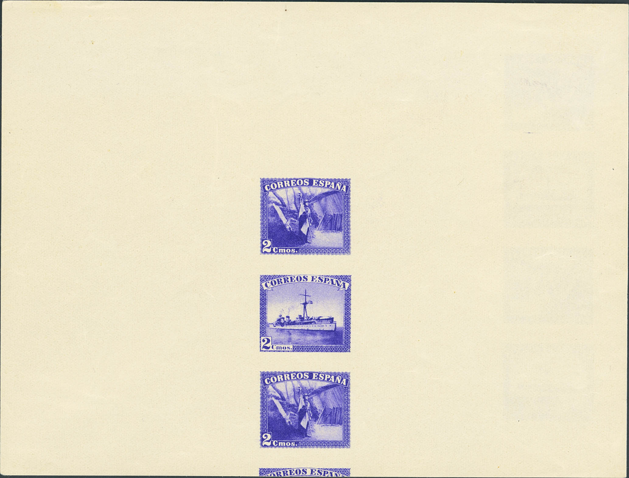 (★) 850P. 1938. Hoja bloque SIN DENTAR. SOLO IMPRESION DEL COLOR VIOLETA (impresión parcial al dorso). MAGNIFICA.