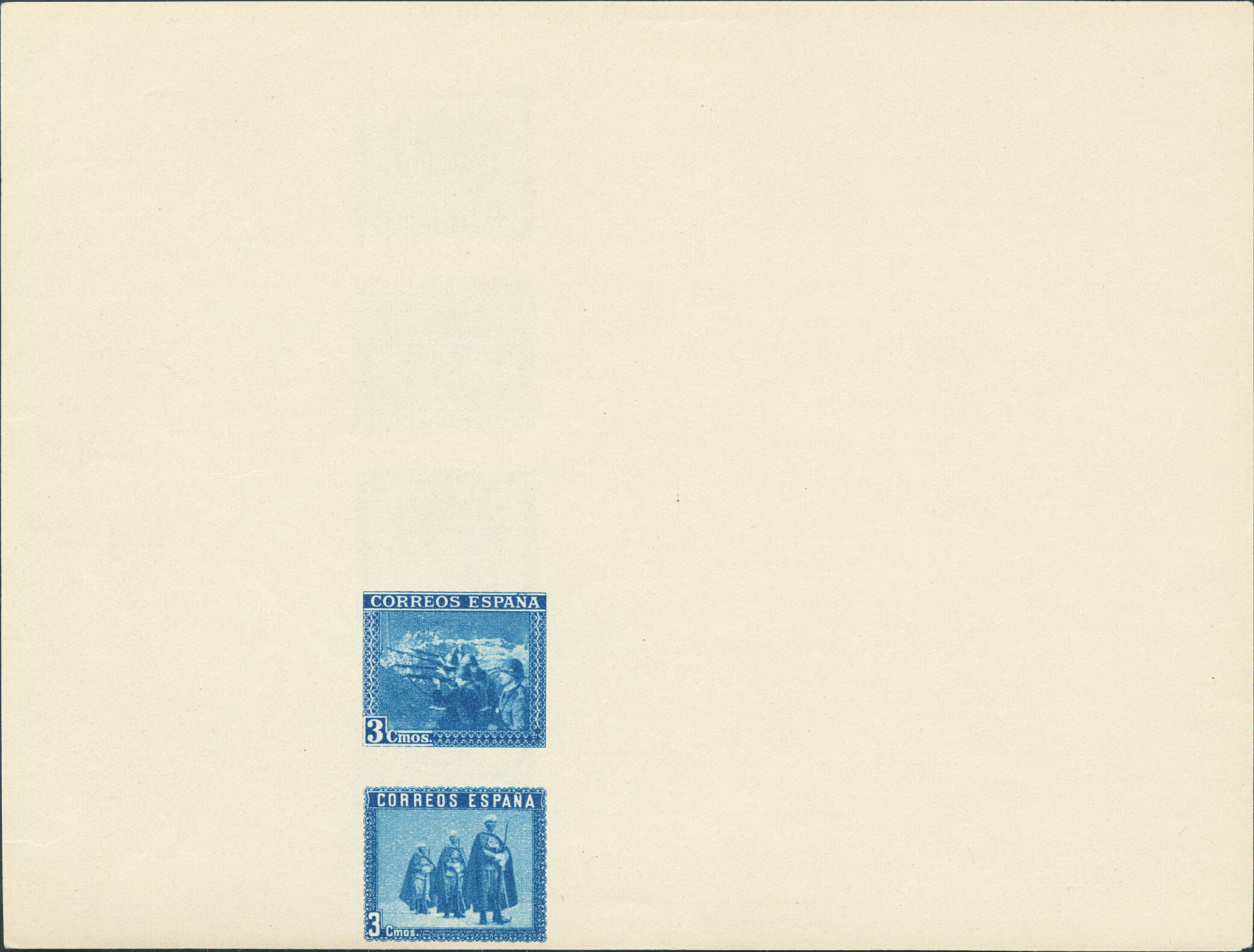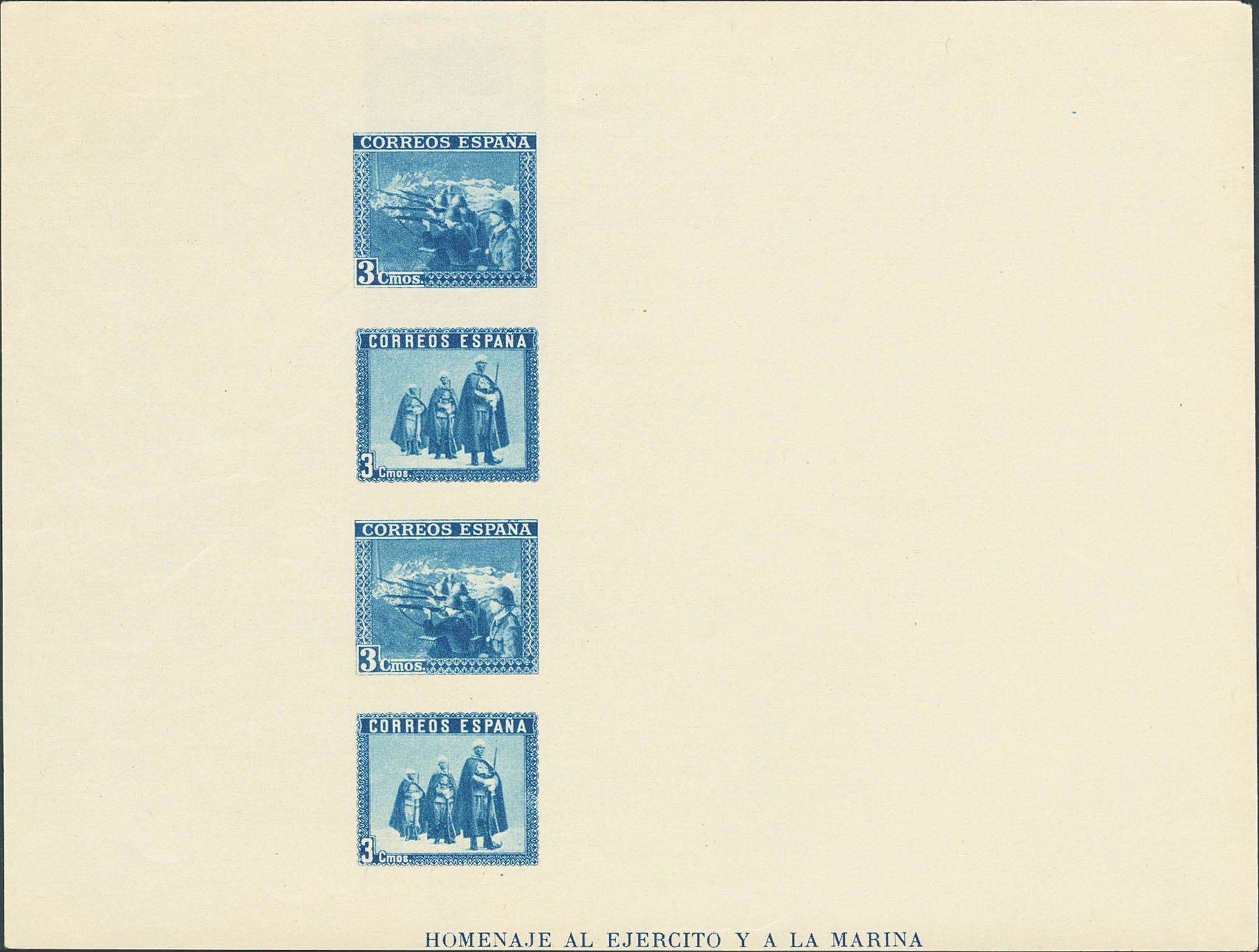 (★) 850P. 1938. Hoja bloque SIN DENTAR. SOLO IMPRESION DEL COLOR AZUL (impresión parcial al dorso). MAGNIFICA Y RARA.