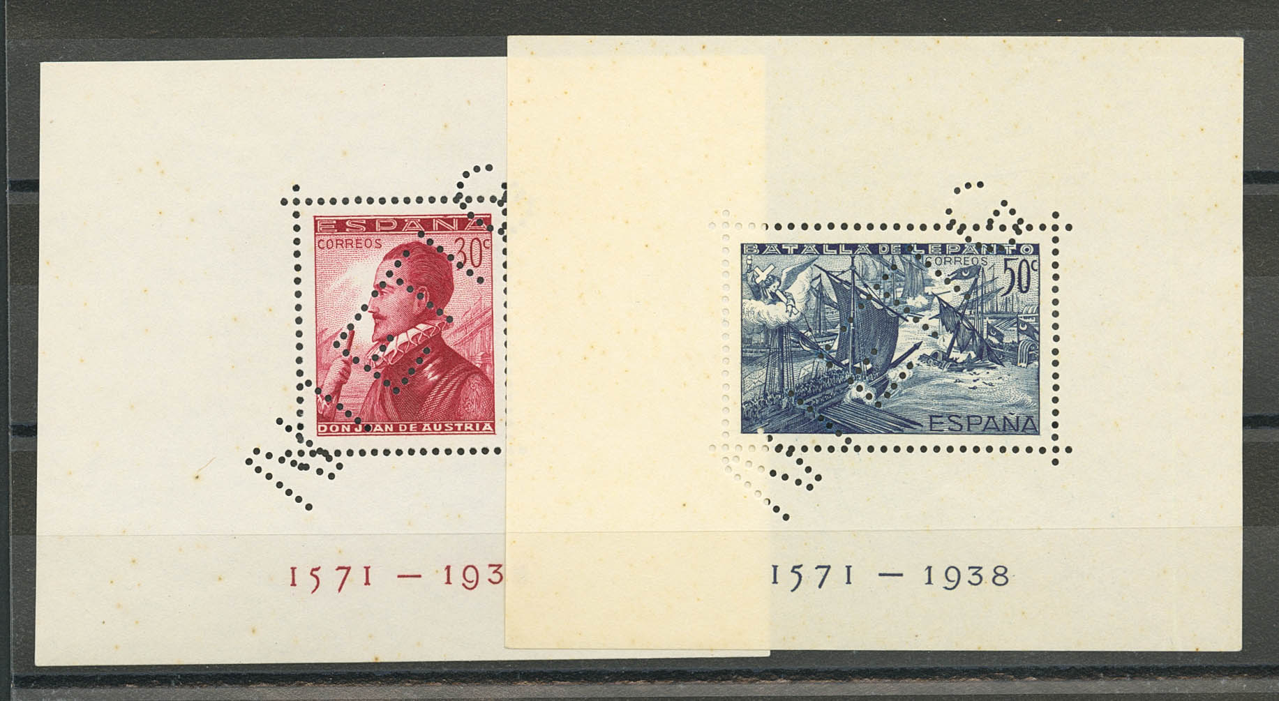 (★) 862/63M. 1938. Hojas bloque. Perforación NIETIG. MAGNIFICAS. Cert. GRAUS. Edifil 2021: 160 Euros