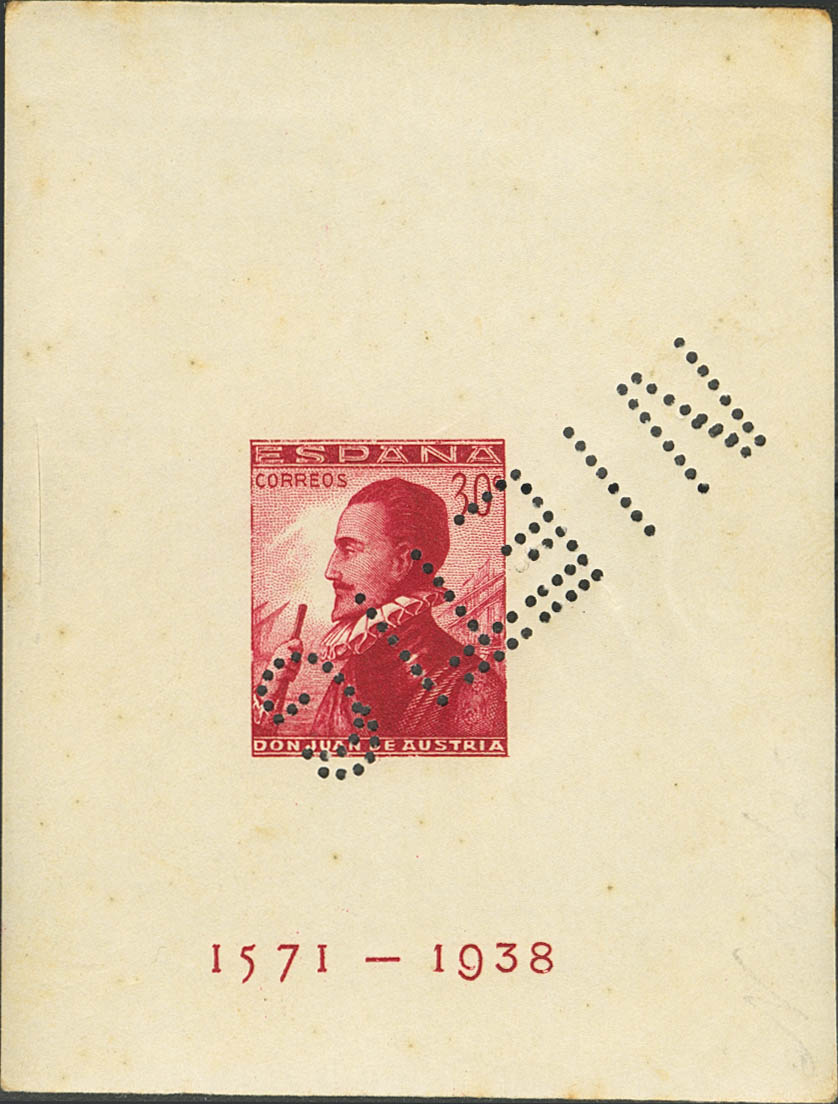 ★★ 862Ms. 1938. Hoja bloque SIN DENTAR. Perforación NIETIG, invertida. MAGNIFICA.