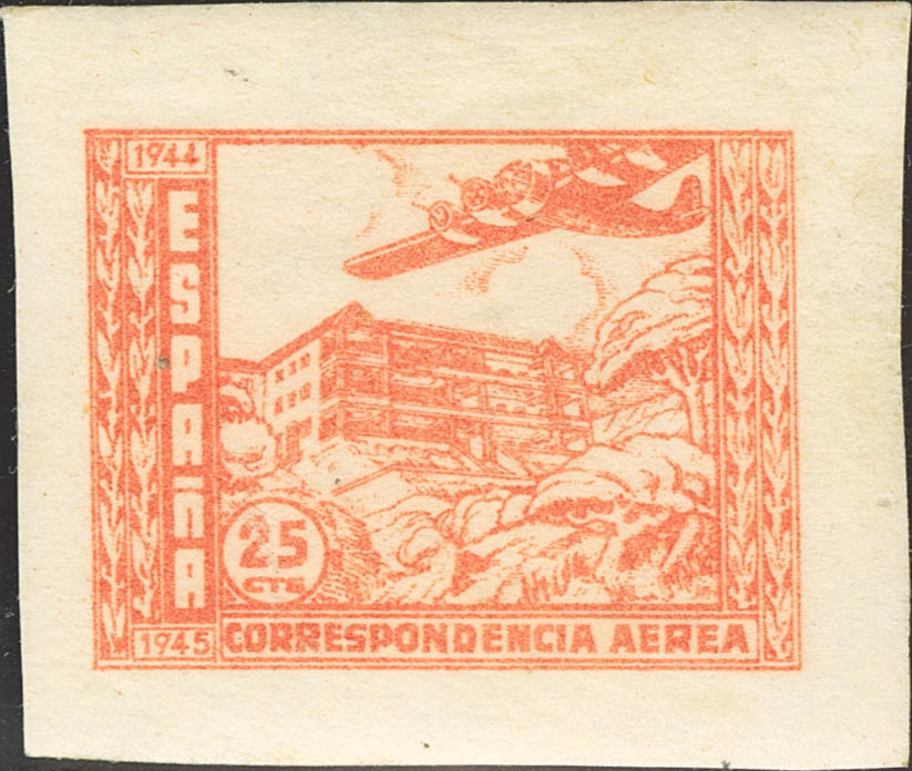 ★ 988efs. 1944. 25 cts naranja. SIN CRUZ DE LORENA y SIN DENTAR. MAGNIFICA. Edifil 2021: 124 Euros