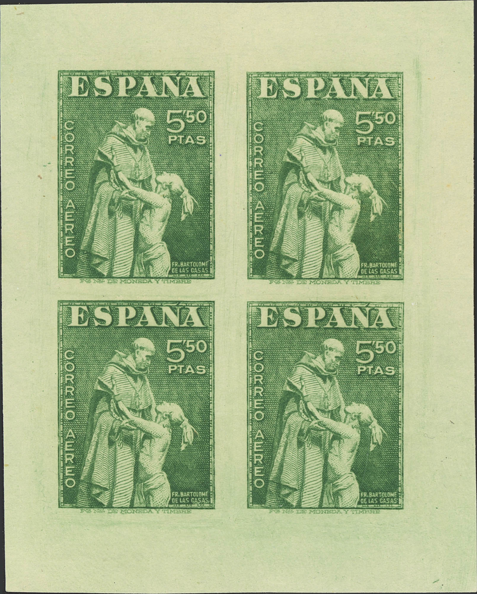 (★) 1004FN(4). 1937. 5´50 pts verde. BLOQUE REPORTE DEL FALSO POSTAL. MAGNIFICO Y ESPECTACULAR, MUY RARO. Edifil 2021: 68 Euros