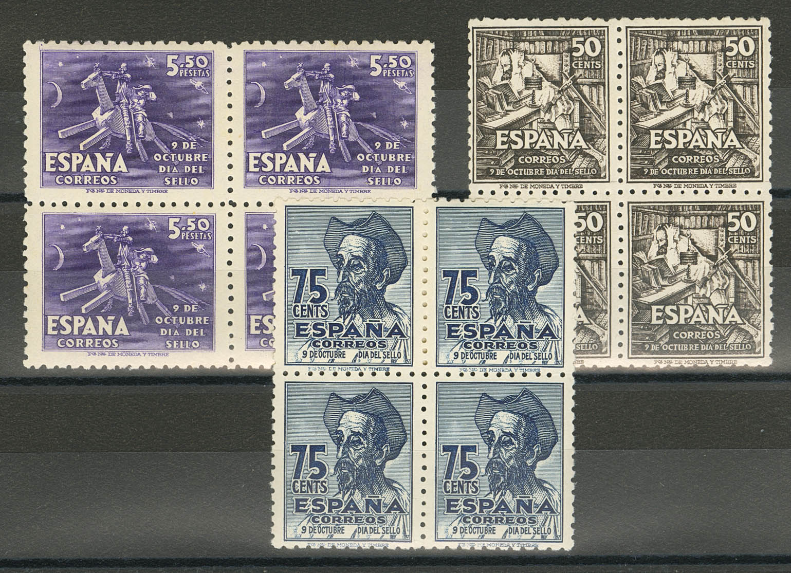 ★★ 1012/14(4). 1947. Serie completa, bloque de cuatro. MAGNIFICA. Edifil 2025: +48 Euros