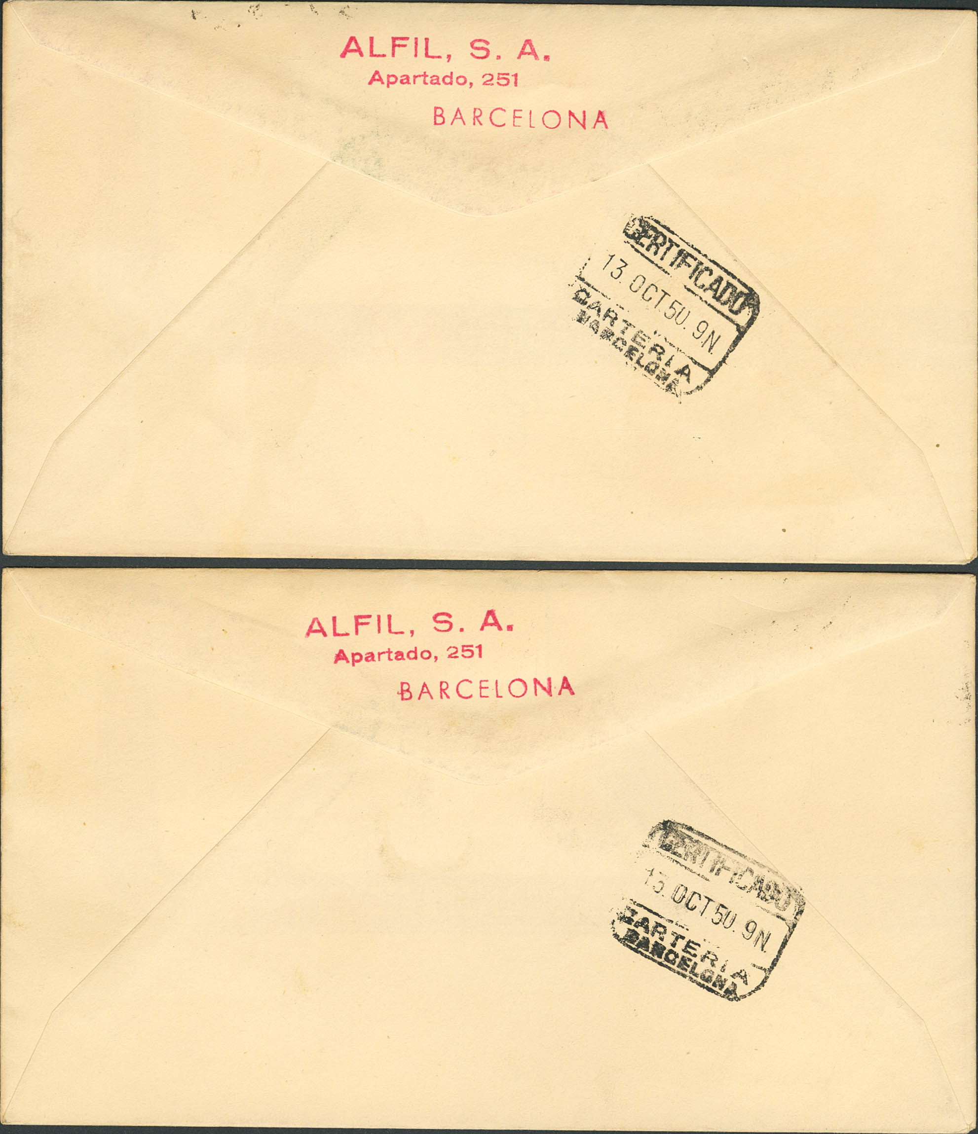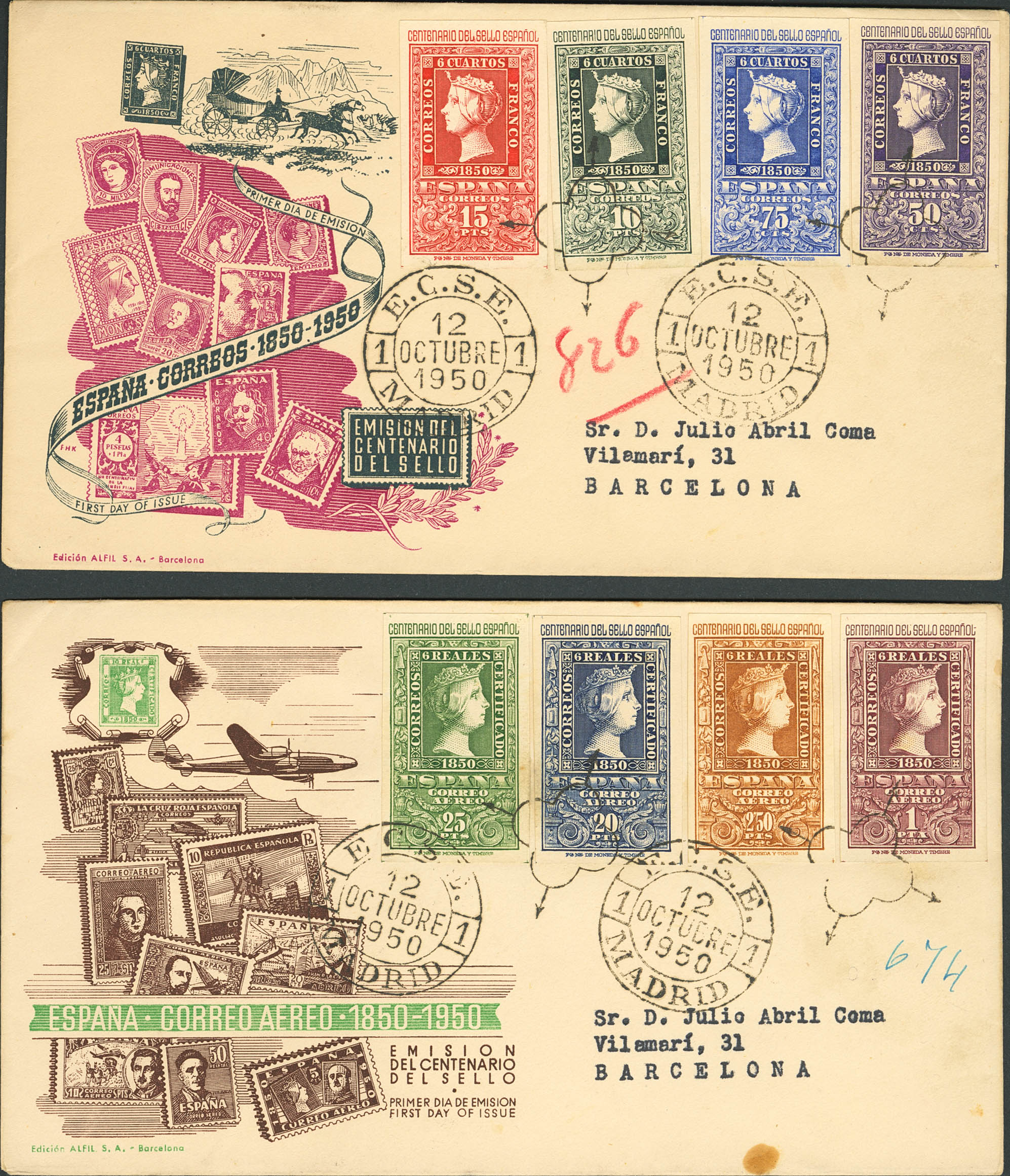1075/82. 1950. Serie completa. Sobre de Primer Día circulado de MADRID a BARCELONA. Al dorso llegada. MAGNIFICO. Edifil 2025: 875 Euros