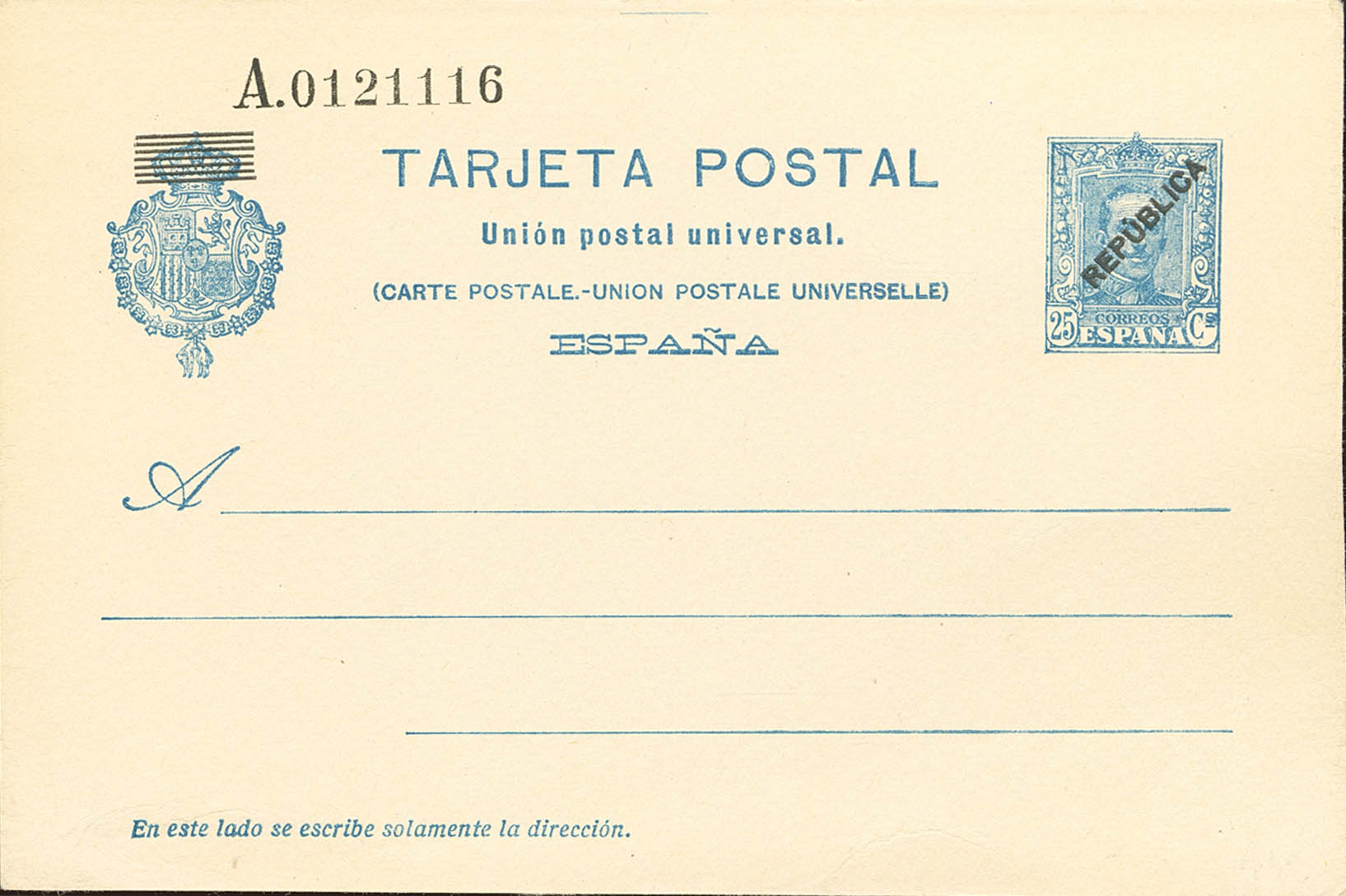 (★) EPM2. 1931. 25 cts azul sobre Tarjeta Entero Postal Local Republicana de Madrid. Sobrecarga REPUBLICA. MAGNIFICA Y RARA. Edifil 2017: 585 Euros