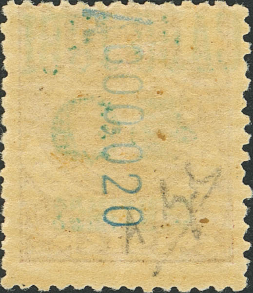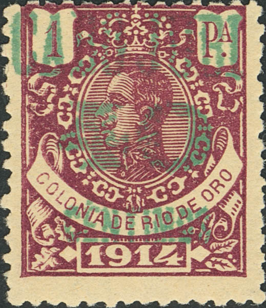 ★ 4Ahcc. 1916. 40 cts sobre 1 pts violeta. SOBRECARGA EN FORMATO DIFERENTE, en verde. MAGNIFICO Y RARO, NO RESEÑADO CON CAMBIO DE COLOR. Cert. CEM.
