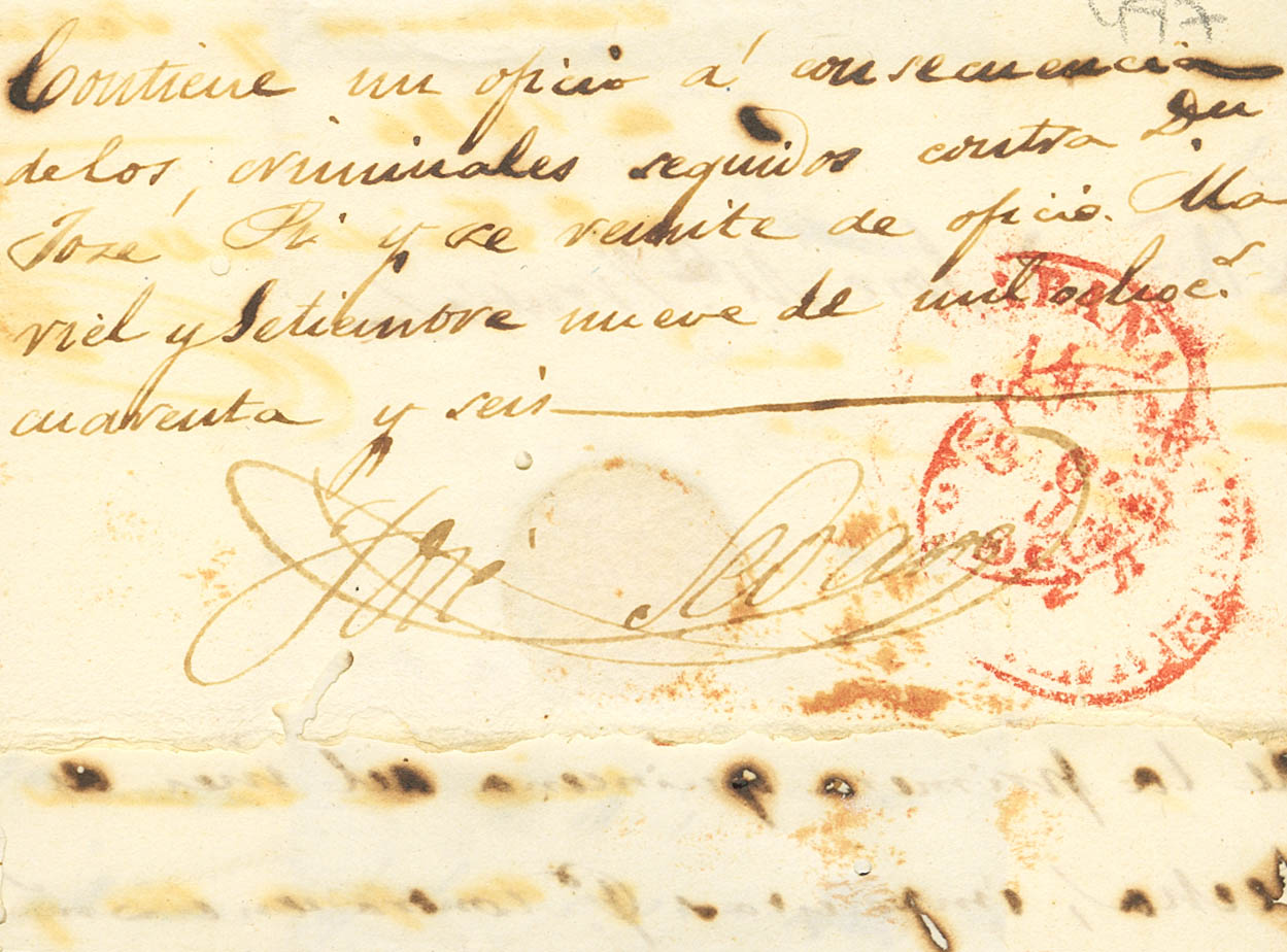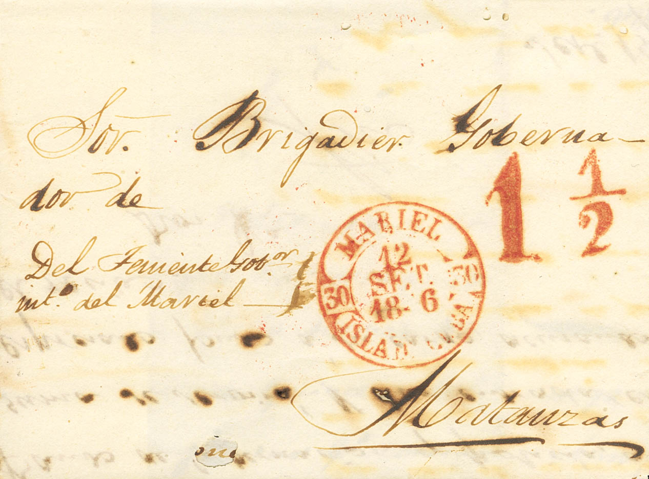 1846. MARIEL a MATANZAS. Baeza MARIEL / ISLA DE CUBA, en rojo. MAGNIFICA Y RARISIMA.