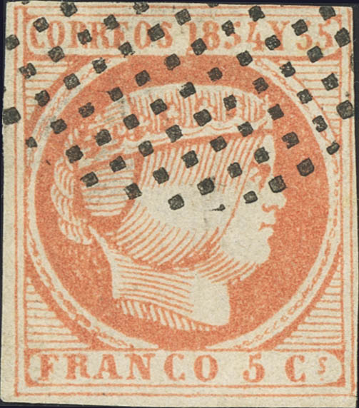 5. 1855. 5 cuartos rojo. MAGNIFICO. Ex-Escalada. Cert. CEM.