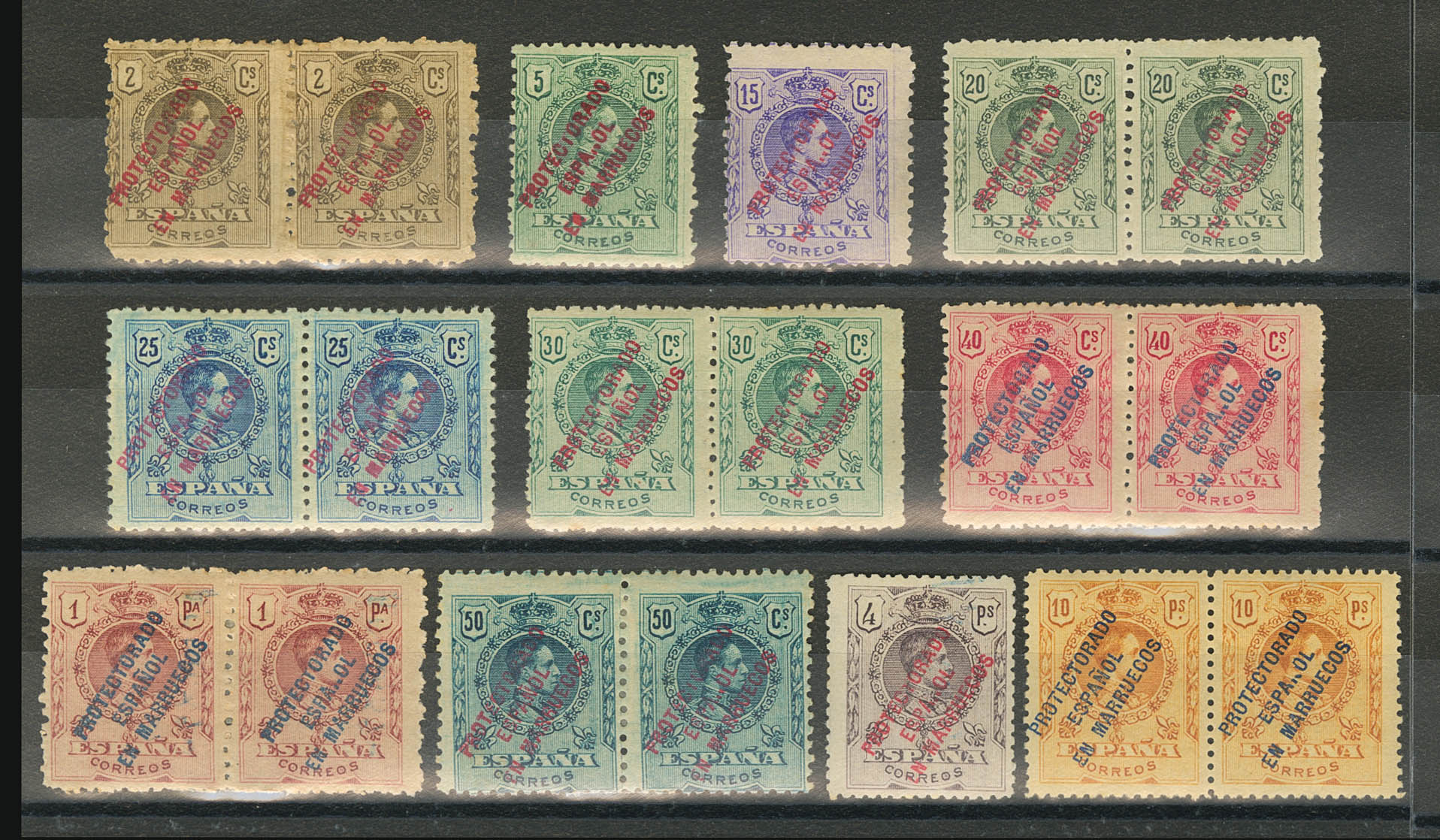★ 44/45hea, 47/55hea. 1915. Serie completa, a falta del 10 cts y 20 cts urgente. Variedad "Ñ" ROTA, algunos en pareja con un sello normal. MAGNIFICA Y RARA. Edifil 2018: +735 Euros