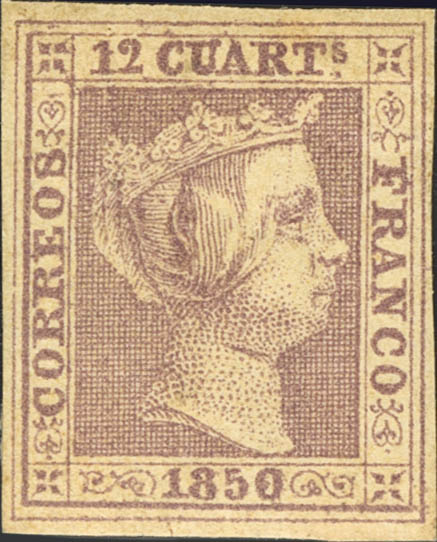 ★ 2. 1850. 12 cuartos lila. Color intenso. MAGNIFICO. Cert. COMEX.