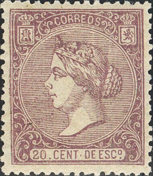 ★★ 85. 1866. 20 cts lila. Centraje excepcional y color intenso. MAGNIFICO. Cert. COMEX.