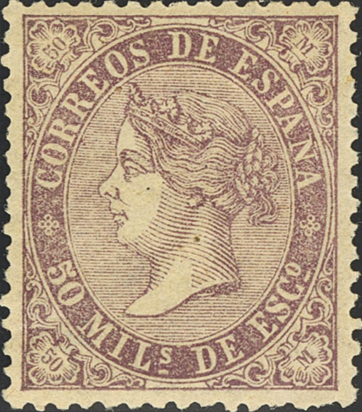 ★ 98. 1868. 50 mils violeta. Centraje y color excepcional. PIEZA DE LUJO.