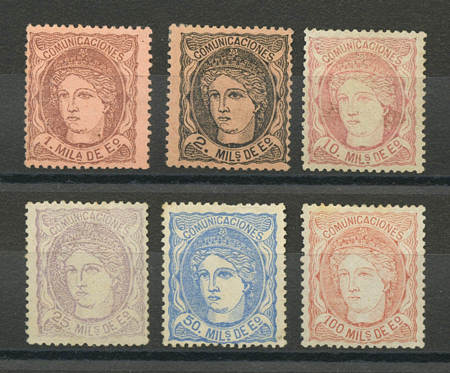 ★/(★) 102/03, 105/08. 1870. 1 mils, 2 mils, 10 mils, 25 mils, 50 mils y 100 mils. MAGNIFICOS.