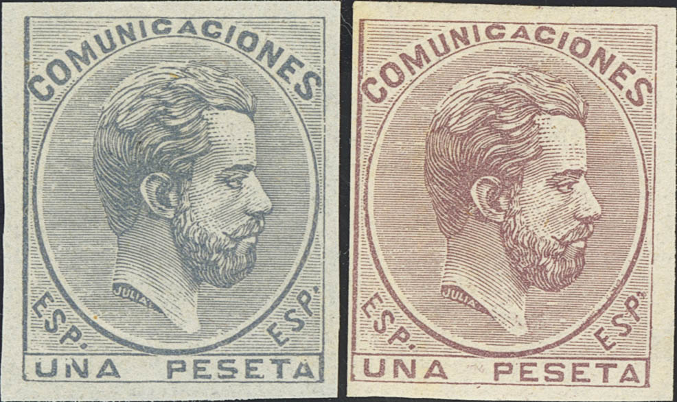 ★ 127P(2). 1872. 1 pts gris y 1 pts lila. ENSAYOS DE COLOR. MAGNIFICOS Y RAROS, NO RESEÑADOS EN GALVEZ.