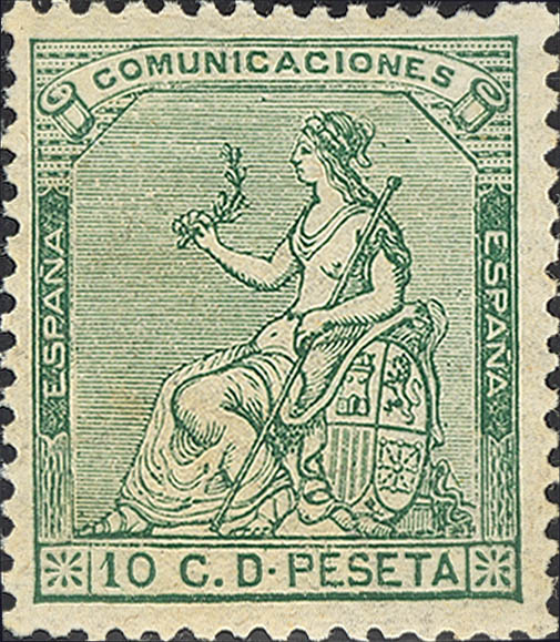 ★ 133. 1873. 10 cts verde. Color intenso. MAGNIFICO.
