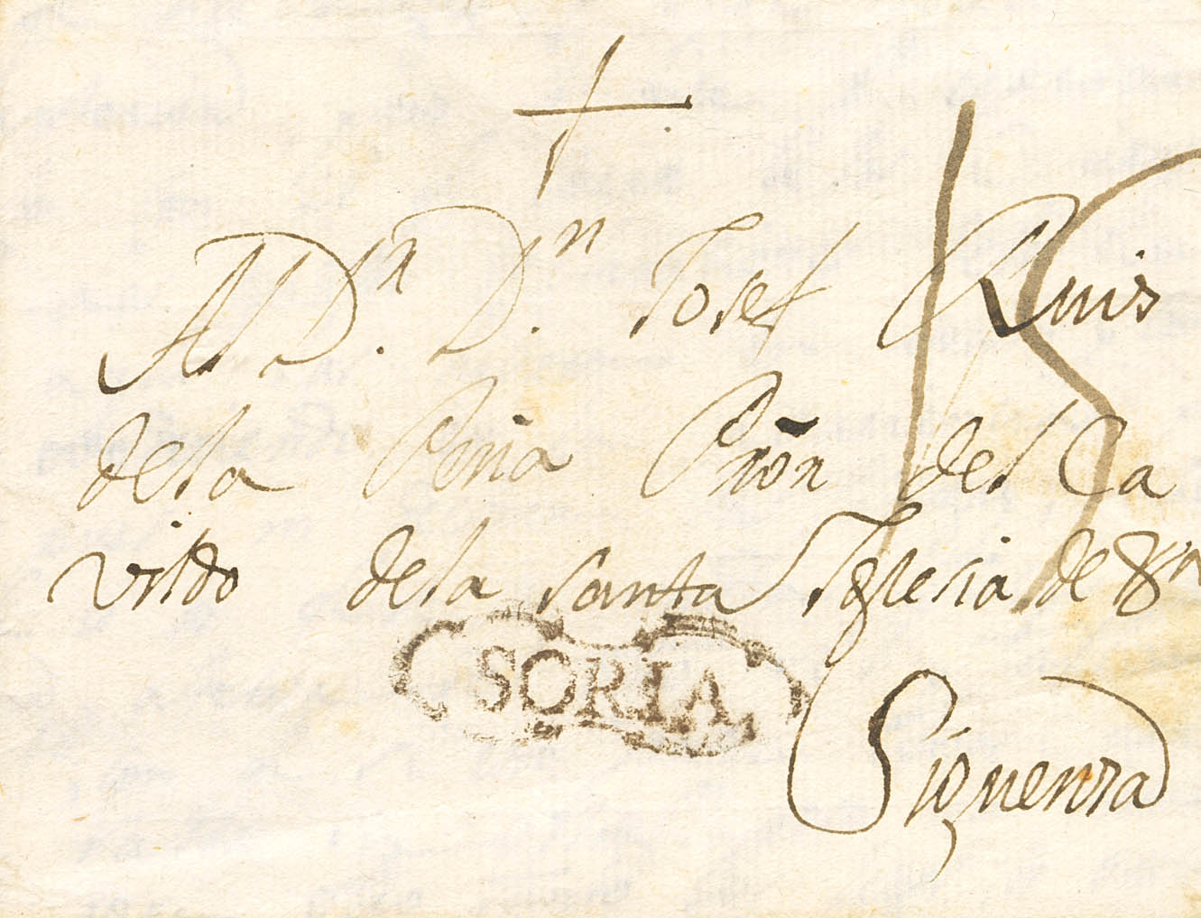 1781. ALMAZAN (SORIA) a SIGÜENZA. Marca SORIA, en marrón de Almazán (P.E.1) edición 2004. MAGNIFICA Y RARISIMA, PRIMERA FECHA DE USO CONOCIDA.