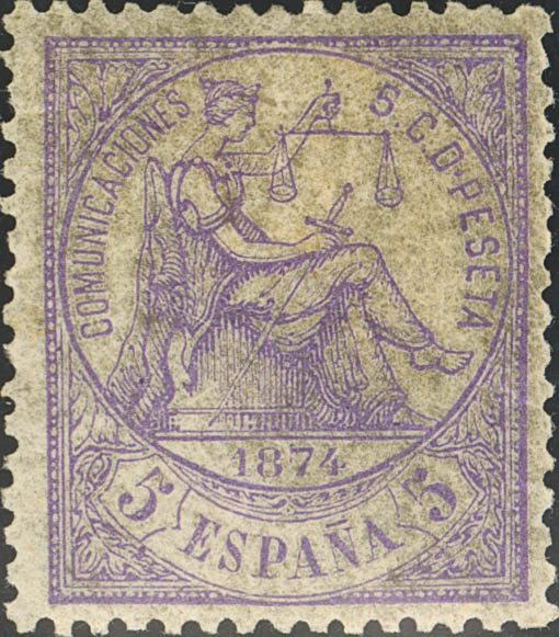 ★ 144. 1874. 5 cts violeta. Color intenso. MAGNIFICO.