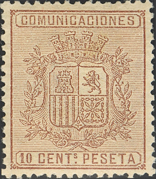 ★ 153A. 1874. 10 cts castaño (Tipo II). Centraje excepcional. MAGNIFICO.