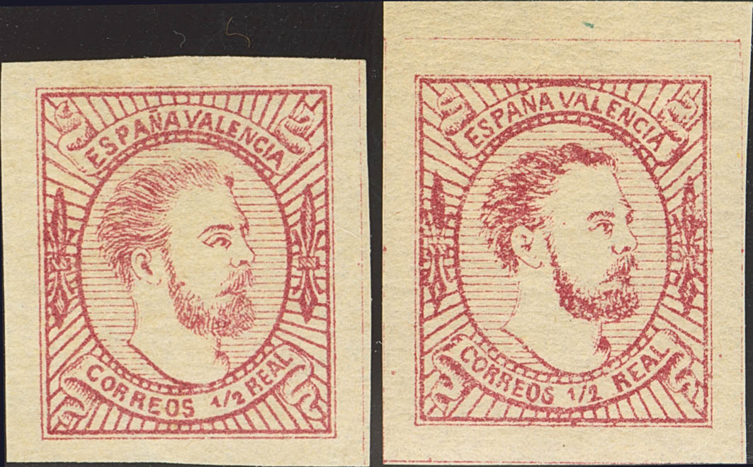 ★/(★) 159, 159A. 1874. ½ real rosa (Tipo I y II). MAGNIFICOS.