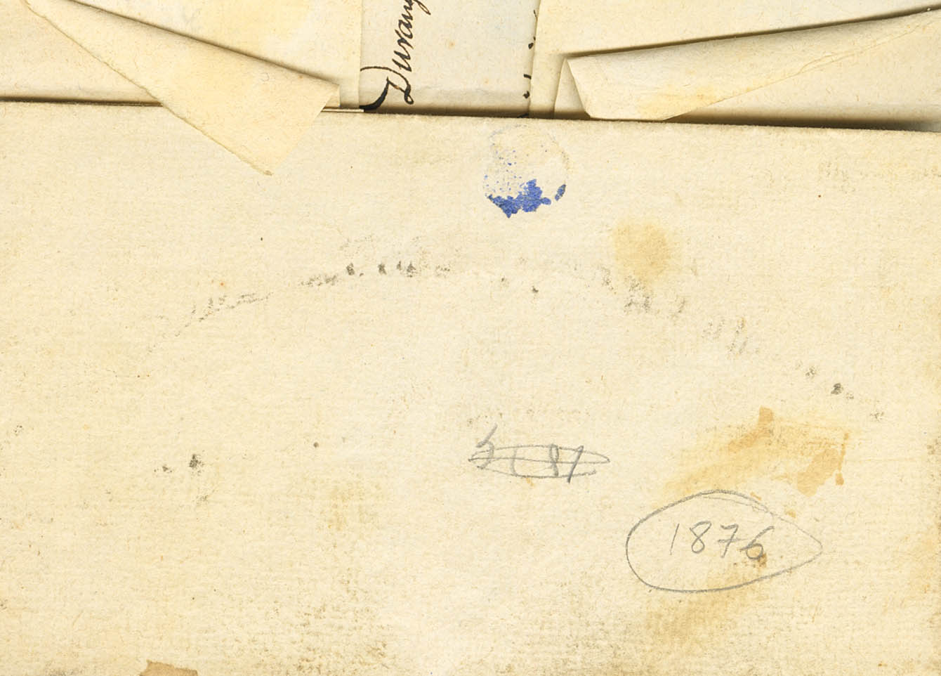 1876. DURANGO a ABADIANO (VIZCAYA), dirigida a la población donde tuvo lugar el último gran enfrentamiento entre Liberales y Carlistas el 5 de Febrero de 1876 (la carta está fechada el 7 de Marzo de 1876, poco después de la finalización de la Tercera Guerra Carlista), esta batalla se denominó "Acción de Abadiano". Marca DISTRITO DE / DURANGO, en azul y manuscrito "sale a la 1½". MAGNIFICA Y MUY RARA, CARTA CON ENORME INTERES HISTORICO.
