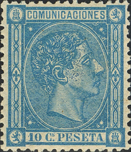 ★★ 164. 1875. 10 cts azul. Centraje y color excepcional. PIEZA DE LUJO. Cert. COMEX.