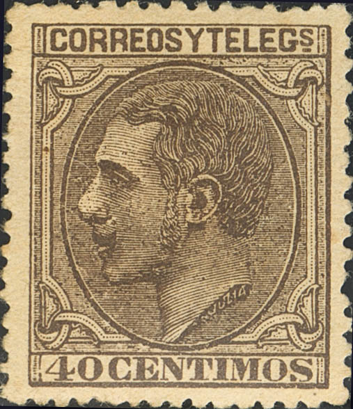 ★ 205. 1879. 40 cts castaño. Centraje y color excepcional. PIEZA DE LUJO.
