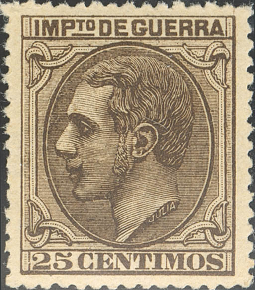 ★ NE7. 1879. 25 cts castaño NO EMITIDO. Excepcional centraje y color intenso. PIEZA DE LUJO.