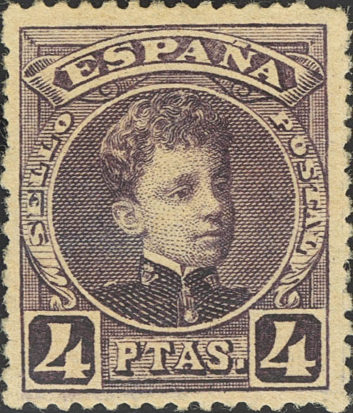 ★ 254N. 1901. 4 pts violeta (excelente centraje y color intenso). Nº000000. MAGNIFICA. Cert. GRAUS. Edifil 2020: 465 Euros