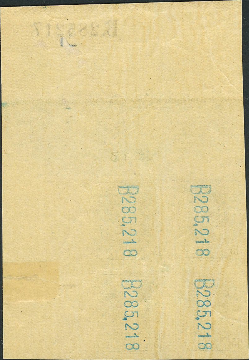 ★★ 315s(4). 1922. 15 cts verde azulado (NºB285218), bloque de cuatro, esquina de pliego (con la numeración que coincide con la numeración del dorso del sello). SIN DENTAR. MAGNIFICO Y MUY RARO VERDADERAMENTE EMITIDO SIN DENTAR, ESTA NUMERACION ESTA INDICADA EN EL EDIFIL INDICANDO OBVIAMENTE ESTA CIRCUNSTANCIA, PIEZA ESPECTACULAR Y DE ENORME INTERES. Edifil 2020: ++2.300 Euros