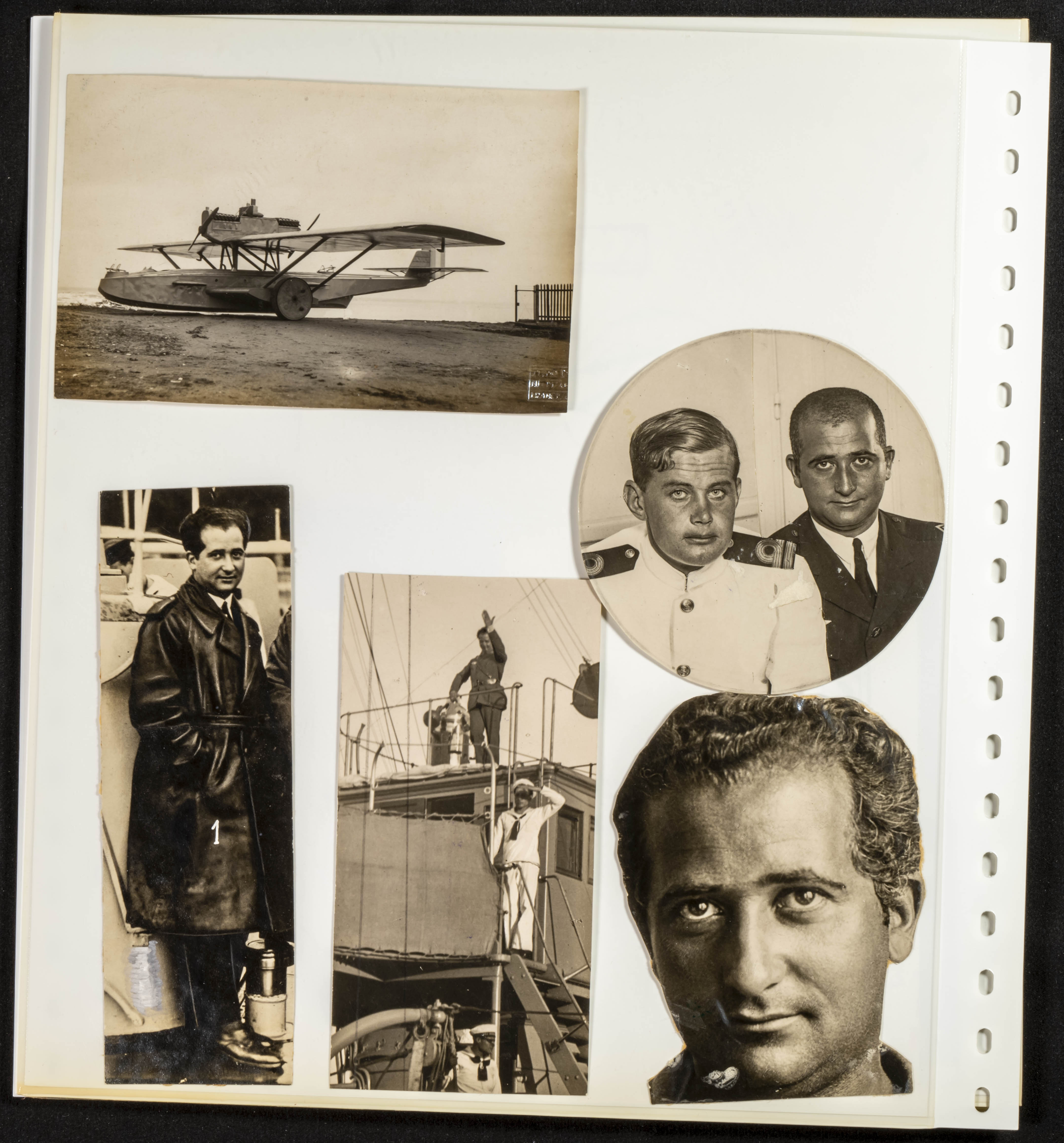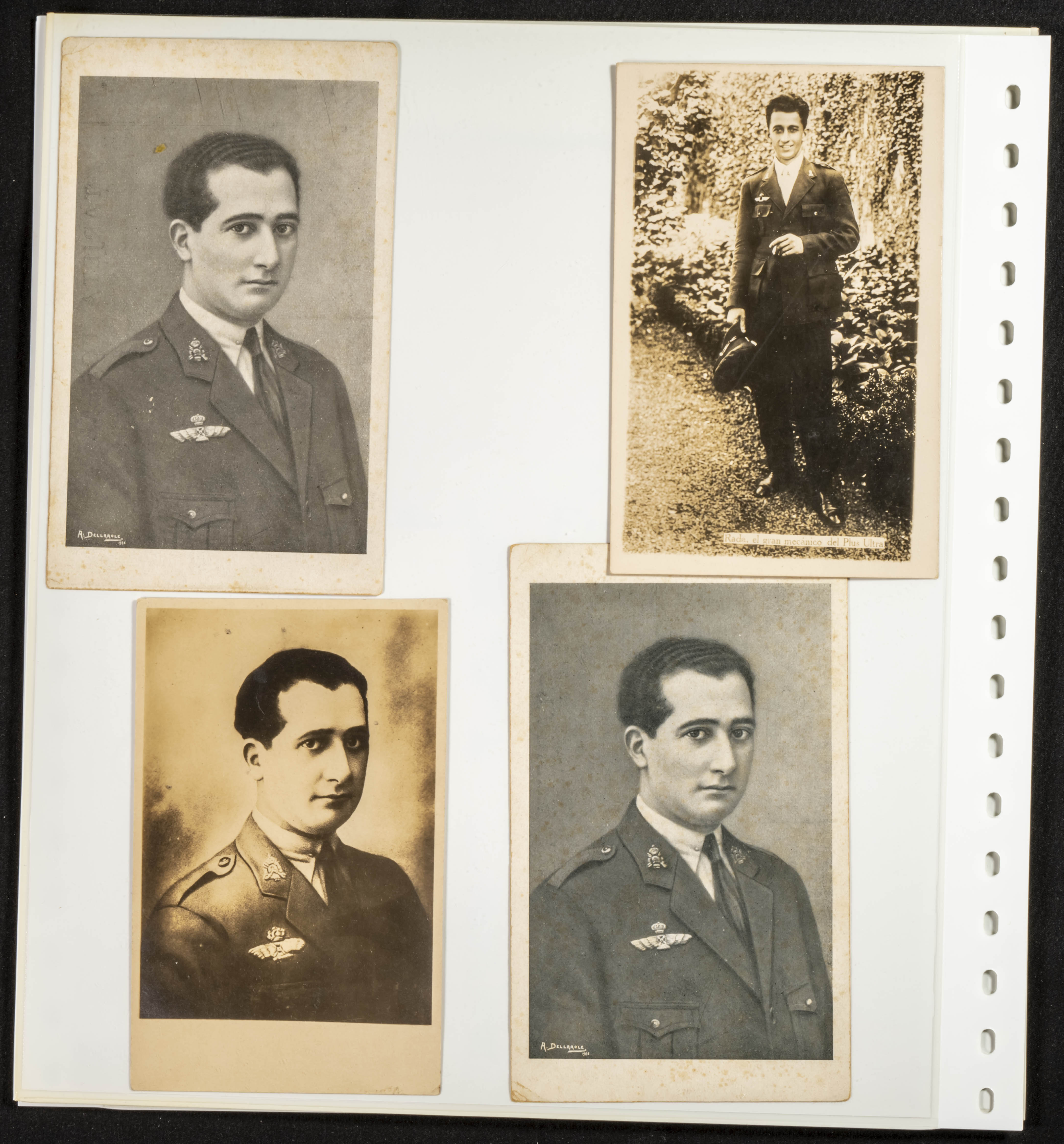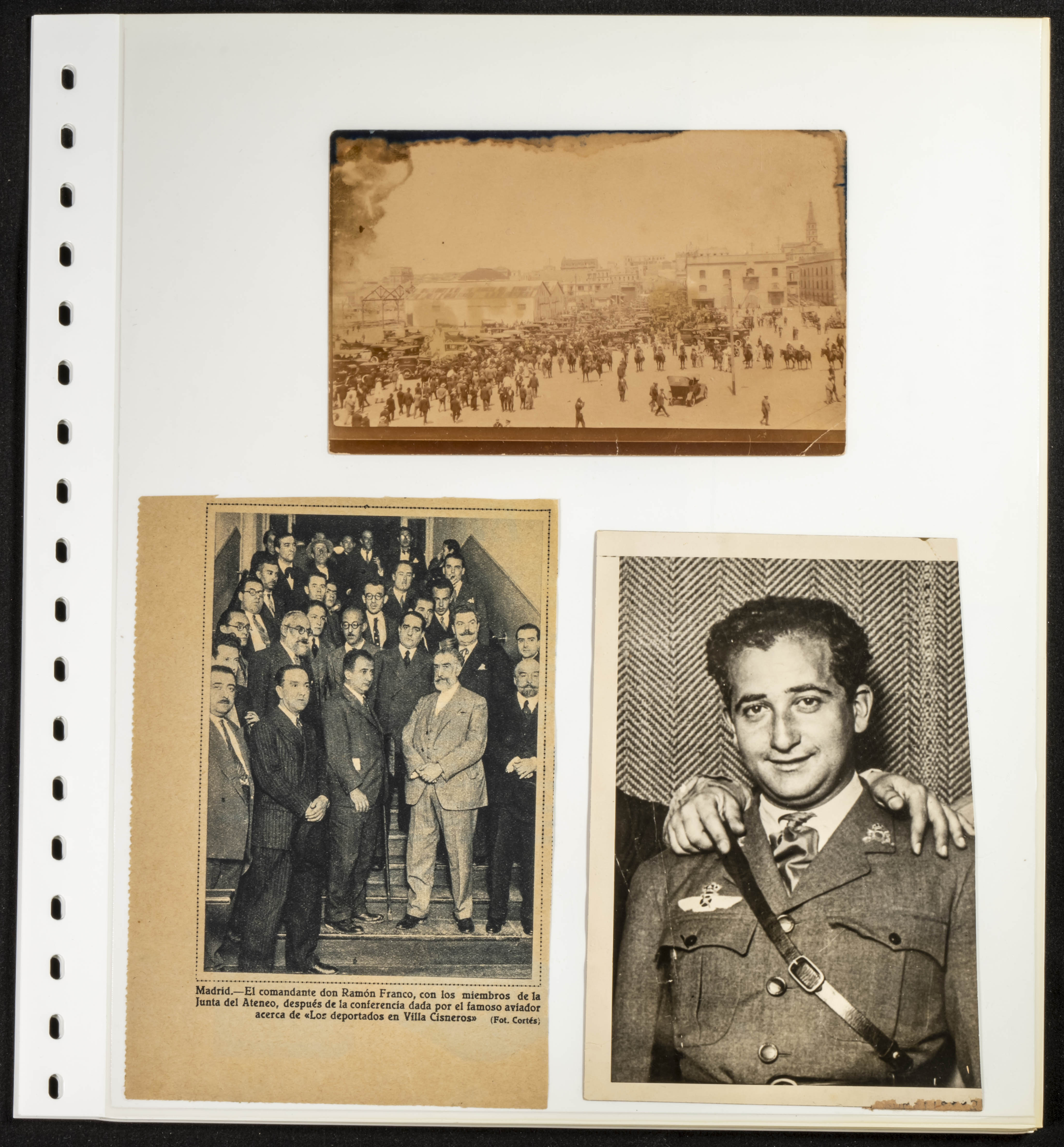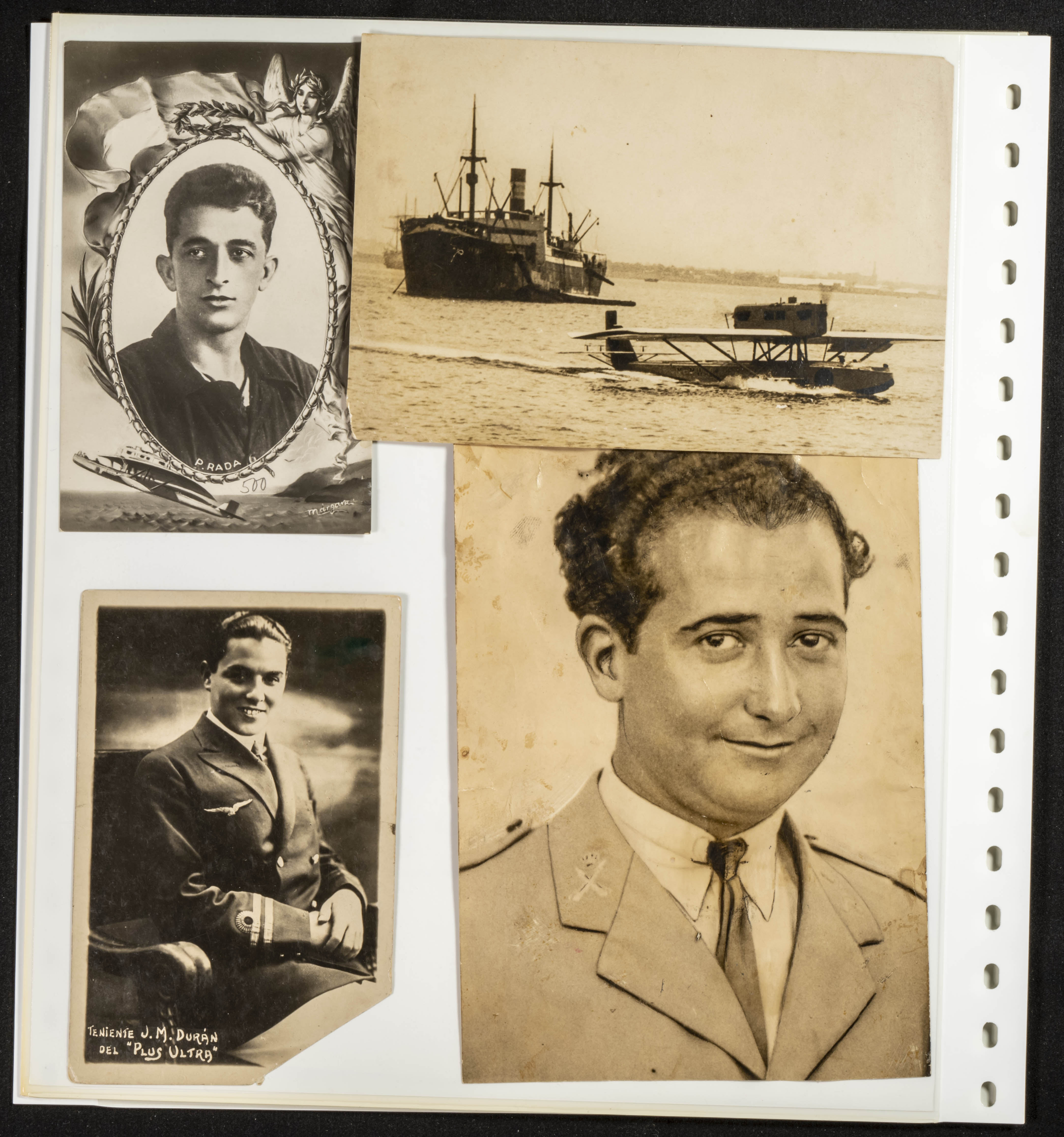△1926. Interesante conjunto de decenas de fotografías, recortes de periódico y tarjetas postales relativas al Raid Aéreo España-Argentina del avión Plus Ultra, con imágenes del Comandante Franco, Juan Manuel Durán, Julio Ruíz de Alda y el mecánico Pablo Rada, además del propio avión (algunas fotos originales) y la mayor parte de los diez años siguientes a la realización de esta gesta de la Aviación Española. MAGNIFICO Y ESPECTACULAR CONJUNTO, PROBABLEMENTE UNICO.