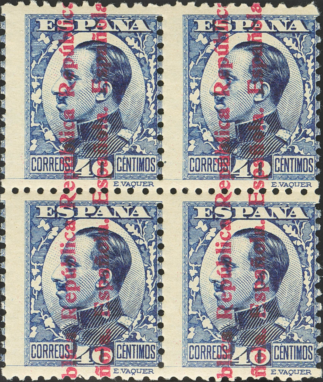 ★★ NE25(4). 1931. 40 cts azul, bloque de cuatro (centraje de emisión). NO EMITIDO. BONITO Y RARO. Edifil 2025: 1.740 Euros