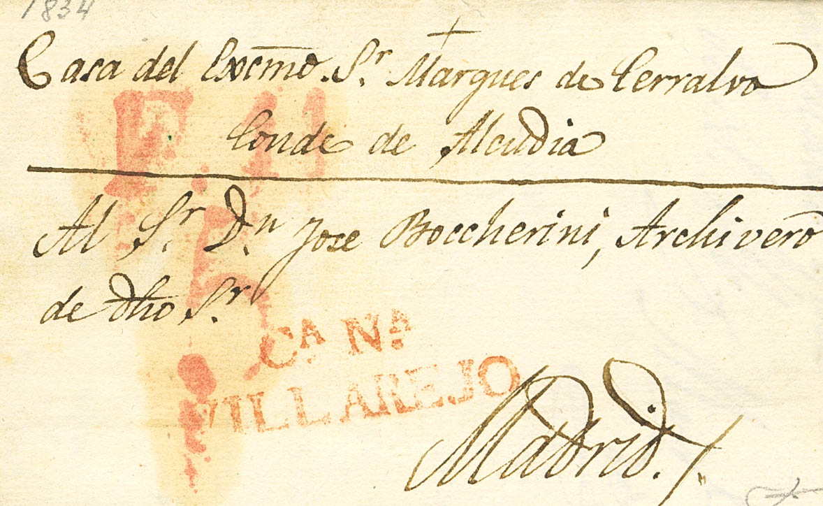 1834. BREA DE TAJO (MADRID) a MADRID. Marca Cª Nª / VILLAREJO, en rojo (P.E.2) edición 2004. MAGNIFICA.