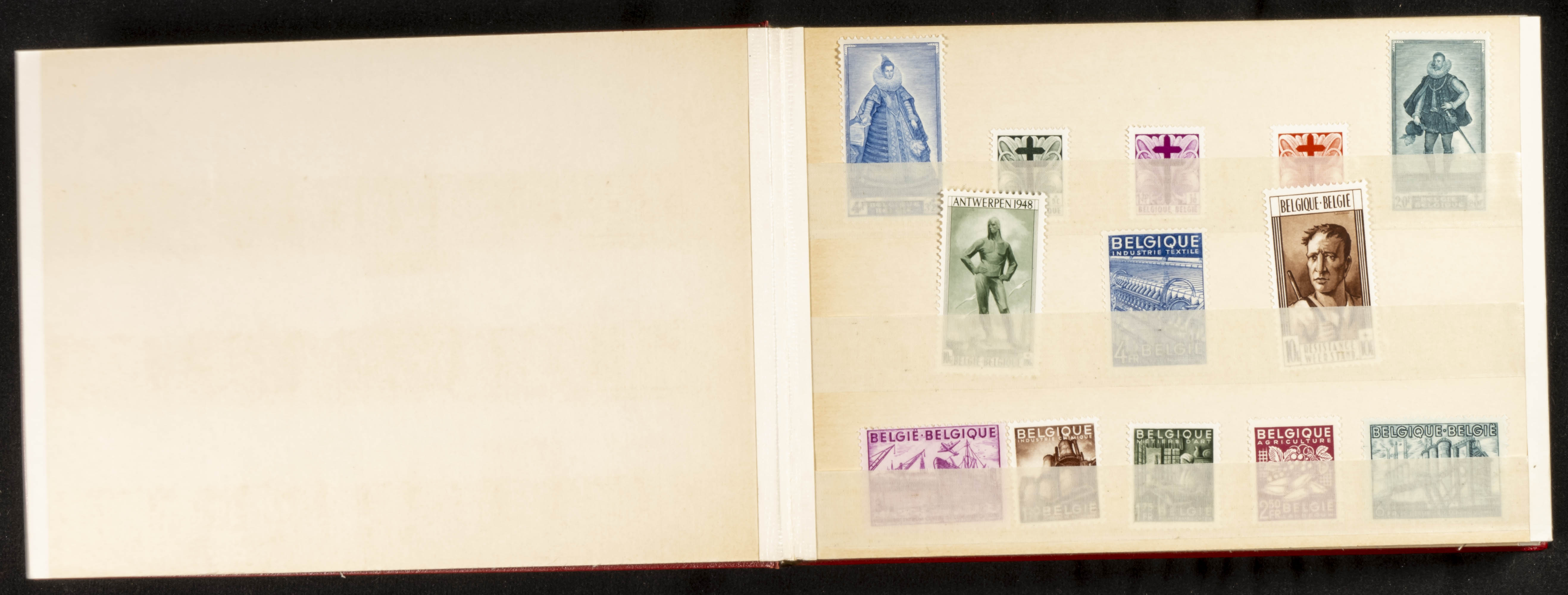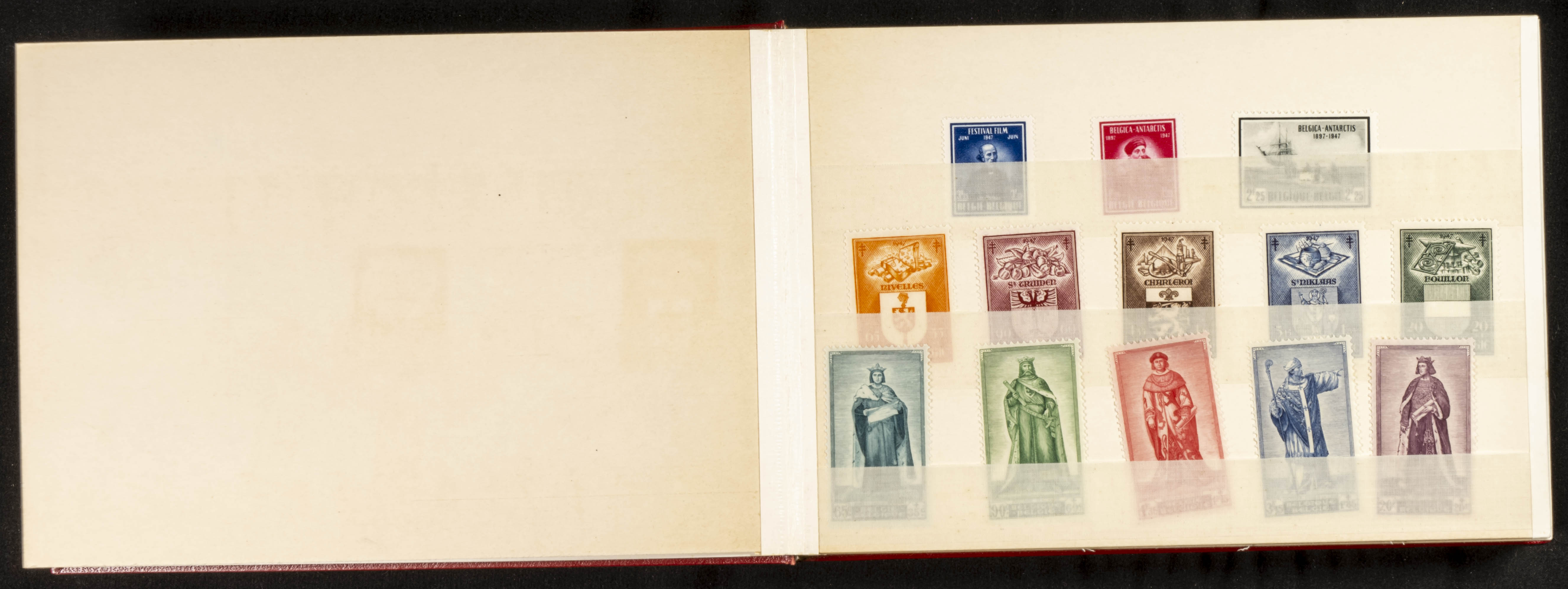 ★★(1947ca). Interesante conjunto de series completas de Bélgica, entre 1947 y 1951 en nuevo y sin fijasellos, montadas en álbum especial de piel del correo belga y dedicado en 1952 a Don Blas Pérez González, Ministro del Interior (muy buena calidad). A EXAMINAR. Yvert 2022: +2.000 Euros